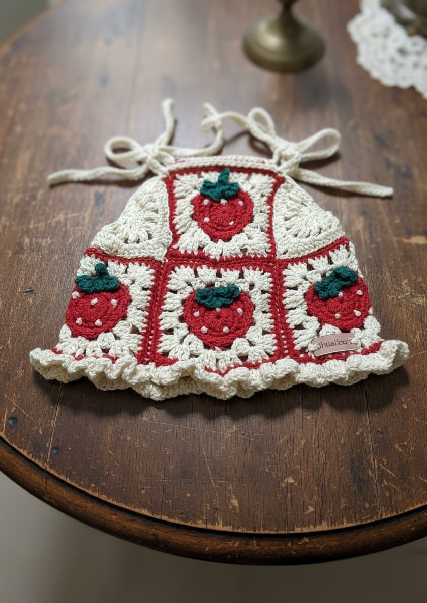 いちごモチーフのフリルニットキャミ